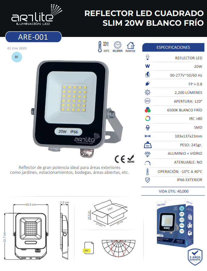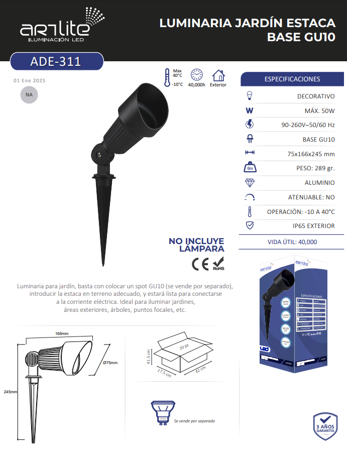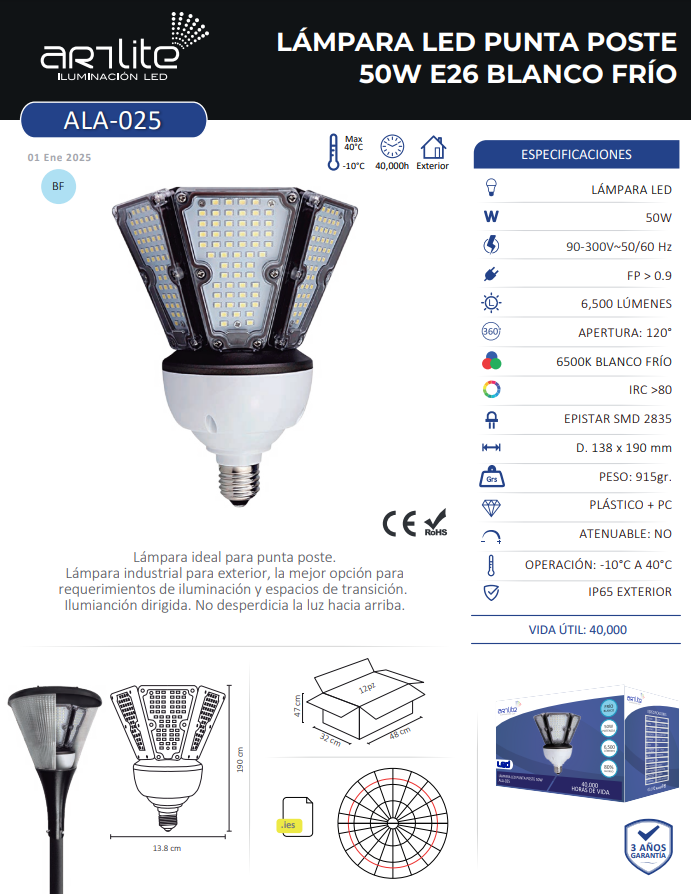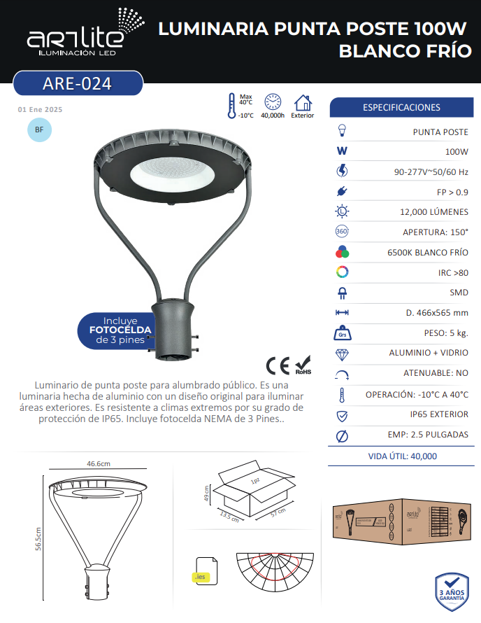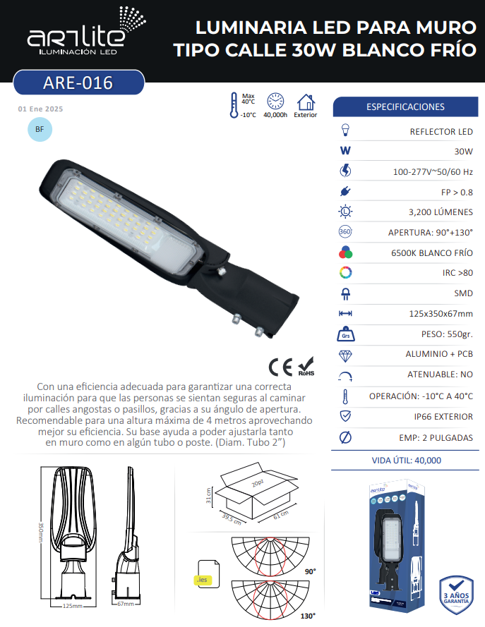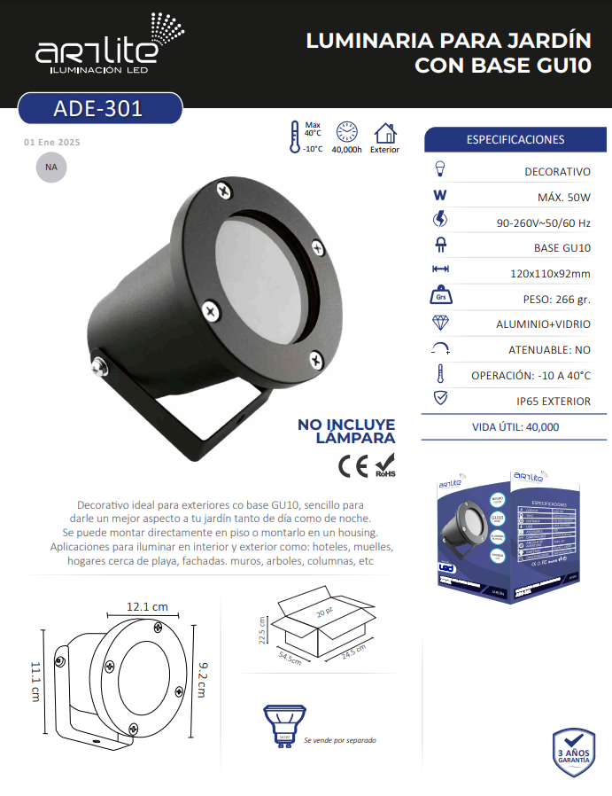 - Iluminación para interior y exterior, reflectores, lámpara de calle.