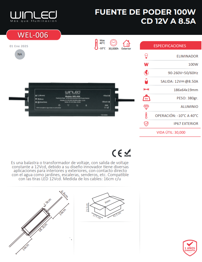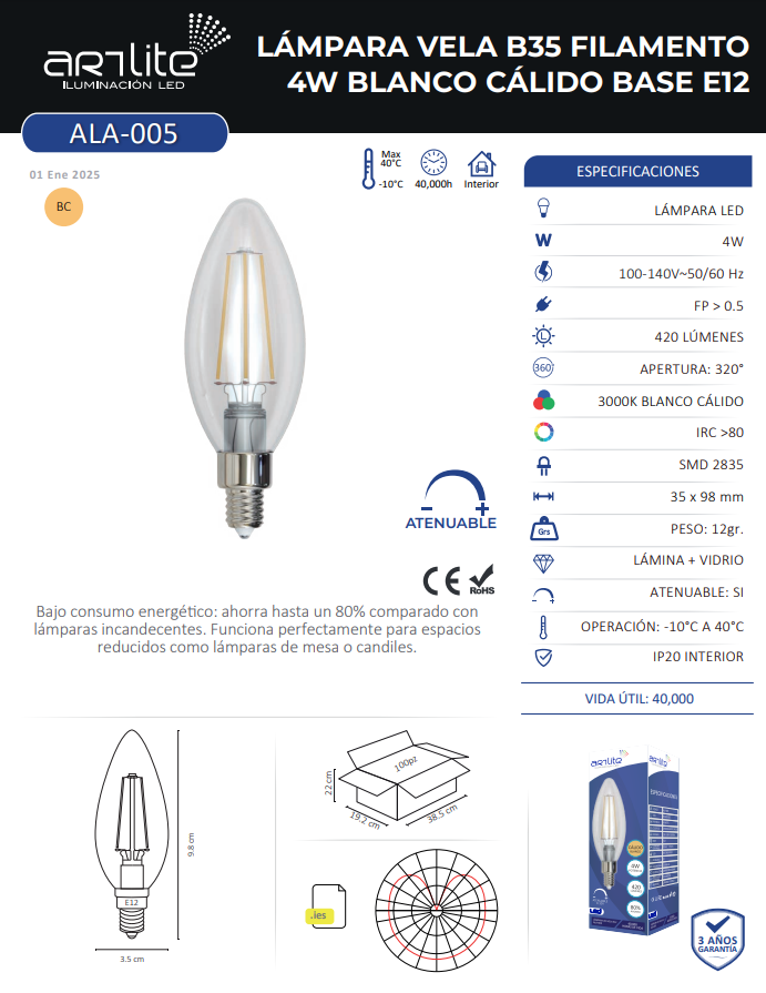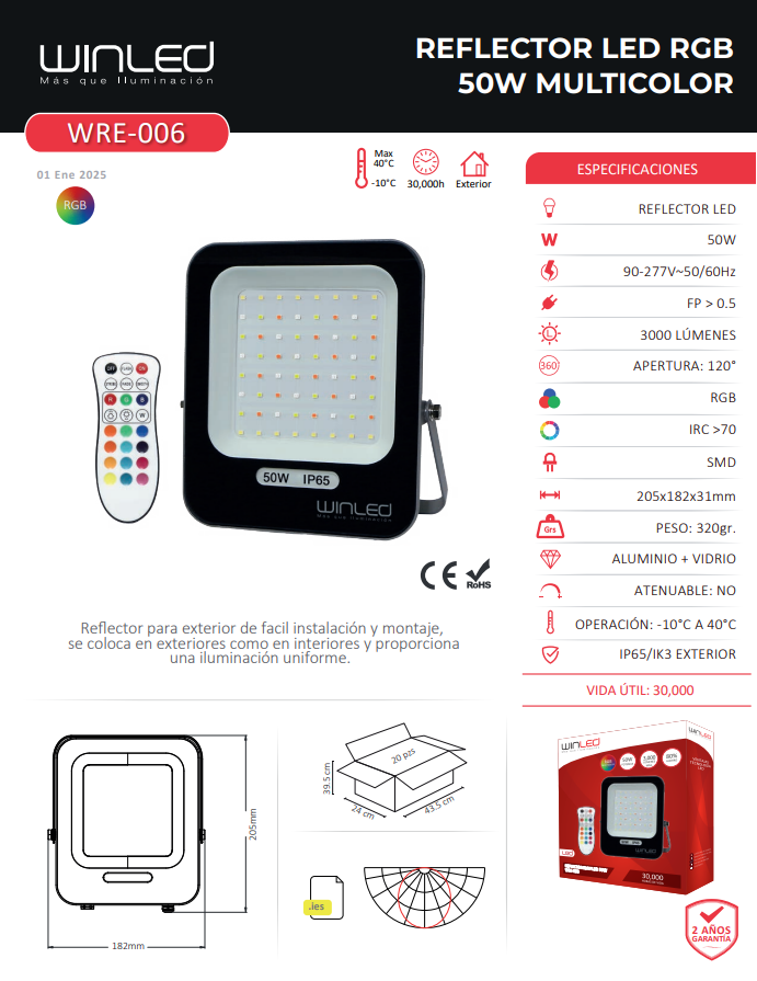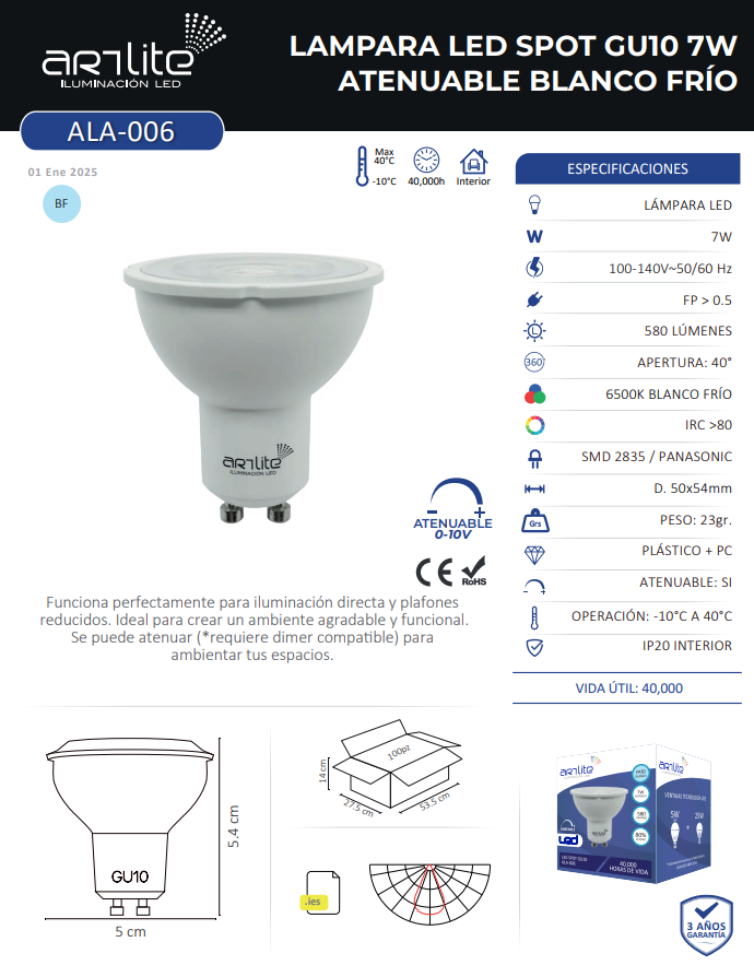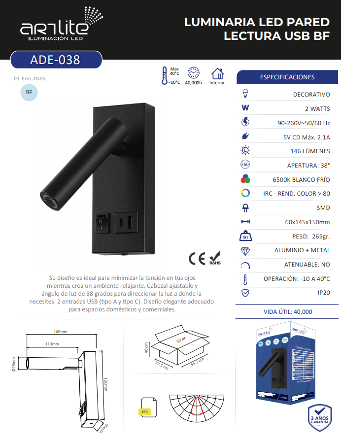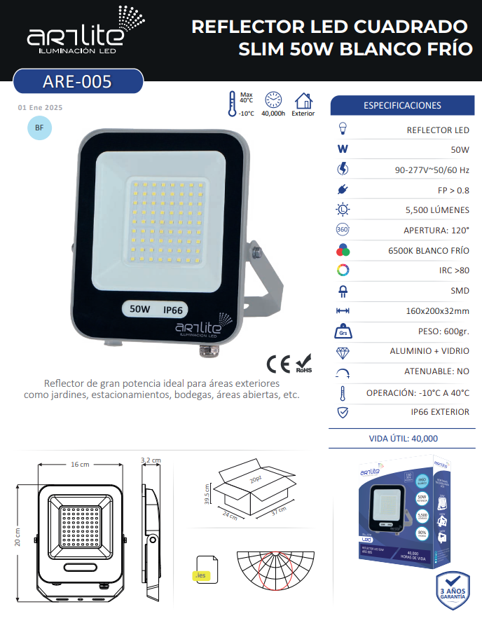 - Iluminación para interior y exterior, reflectores, lámpara de calle.